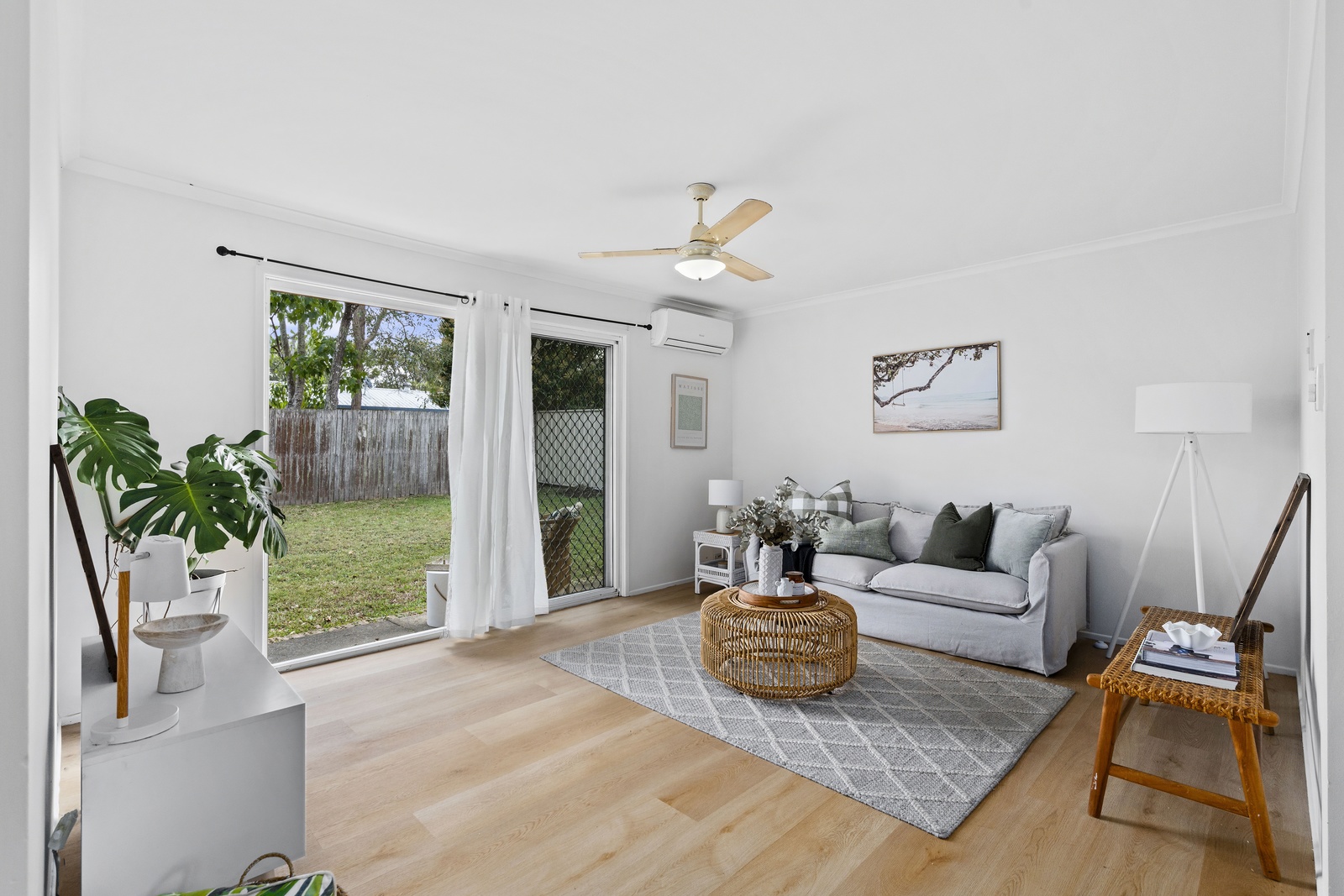Key Features • 3 Bedrooms • 1 Bathroom • Single Lock-Up Garage • 400 SQM Block • Built-in Robes in Bedrooms • Modern Timber-Look Flooring throughout • Air Conditioning and Ceiling Fans throughout • Abundant Natural Light • Open Plan Living and Dining • Kitchen with Ample Storage, Stovetop, Oven, Overhead Range hood, Double Sink, and Window Overlooking Front yard • Spacious Bathroom with Bathtub and Separate Shower • Laundry Room • Fully Fenced Backyard with Outdoor Entertainment Area • Garden Shed