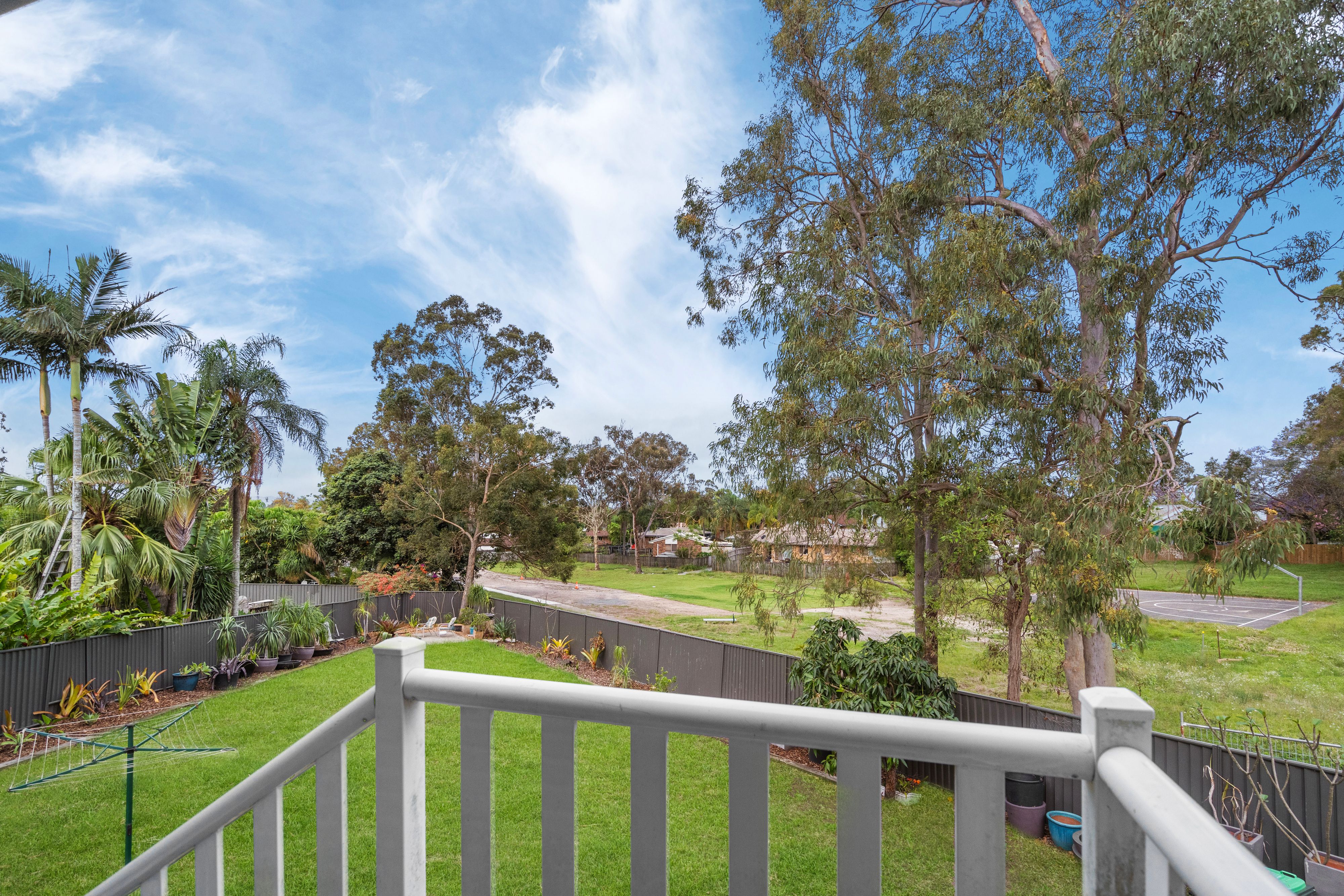 The expansive backyard, accessible via stairs from the dining area, provides plenty of room for outdoor activities and overlooks peaceful parkland. Down the hallway, you'll find freshly painted bedrooms and a renovated bathroom with two toilets, one separate for convenience.